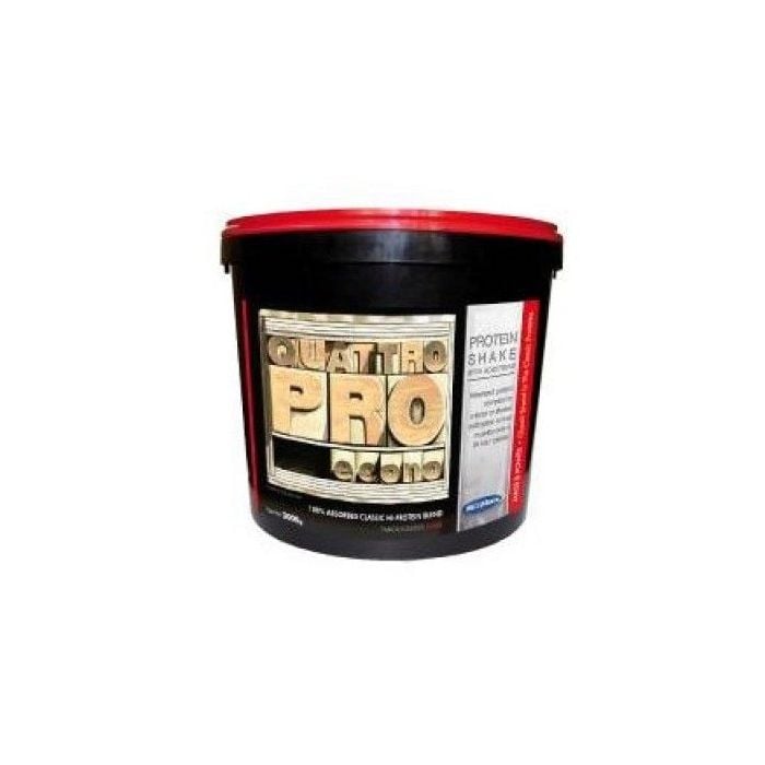 Quattro Pro je višekomponentni protein sa 70% udjelom bjelančevina, koji nudi esencijalne aminokiseline. Sadrži brze i spore proteini, što rezultira neposrednim i dugotrajnijim oslobađanjem bjelančevina. Gotovo ne sadrži masnoću pa je stoga pogodan i za redukcijske dijete.