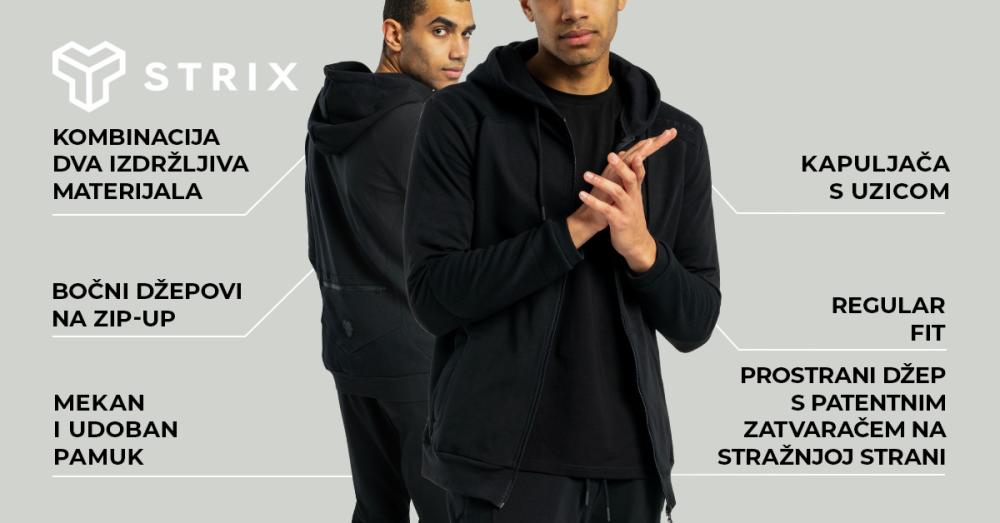 Ova kombinacija osigurava da je ugodno mekan i udoban. Elastični porub tada jamči savršeno prilagođavanje vašem tijelu. To ga također čini svestranim komadom pogodnim za razne aktivnosti. Na primjer, pružit će vam vrhunsku udobnost tijekom slobodnog vremena ili će vam ponuditi prozračnost i učiniti da se manje znojite tijekom neke sportske aktivnosti ili vježbanja u teretani. Osim toga, hoodie s patentnim zatvaračem lako je kombinirati s različitim komadima u vašem ormaru. Daljnji bonus je praktični stražnji džep s patentnim zatvaračem koji će pouzdano pohraniti vaš telefon, ključeve ili torbicu za bežične slušalice dok uživate u ritmu svojih omiljenih pjesama. Pridružite se eliti formiranoj oko brenda STRIX i u potpunosti izrazite svoju ljubav prema aktivnom načinu života.