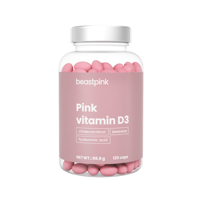 Pink Vitamin D3 sadrži dobro apsorbirajući oblik vitamina D – kolekalciferol. Podržava ispravno funkcioniranje imunološkog sustava, doprinosi održavanju normalne funkcije mišića i pomaže u održavanju zdravih kostiju i zubi. U ovom slučaju je dodatno obogaćen hijaluronskom kiselinom, koja je čest sastojak u beauty proizvodima.