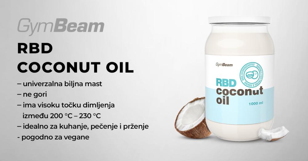 RBD kokosovo ulje je svestrano biljno ulje koje možete koristiti za pripremu slanih i slatkih jela. Kratica RDB znači da se radi o rafiniranom, izbijeljenom i dezodoriranom kokosovom ulju. Većina njegovog profila sastojaka sastoji se od triglicerida srednjeg lanca (MCT). Za razliku od običnih dugolančanih masnih kiselina, one se brže probavljaju.