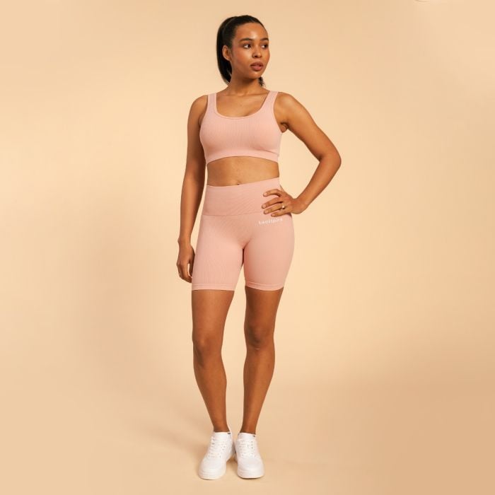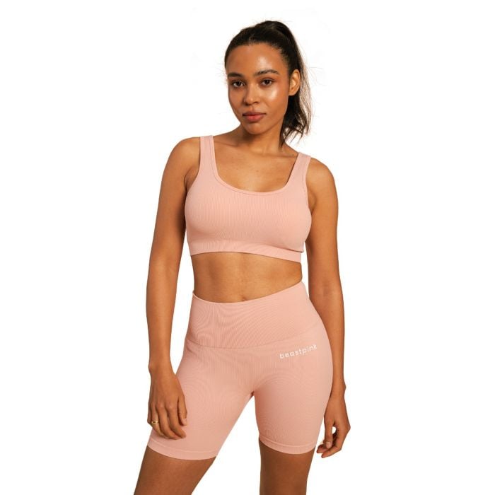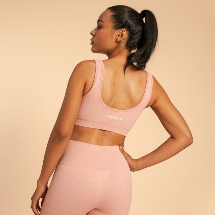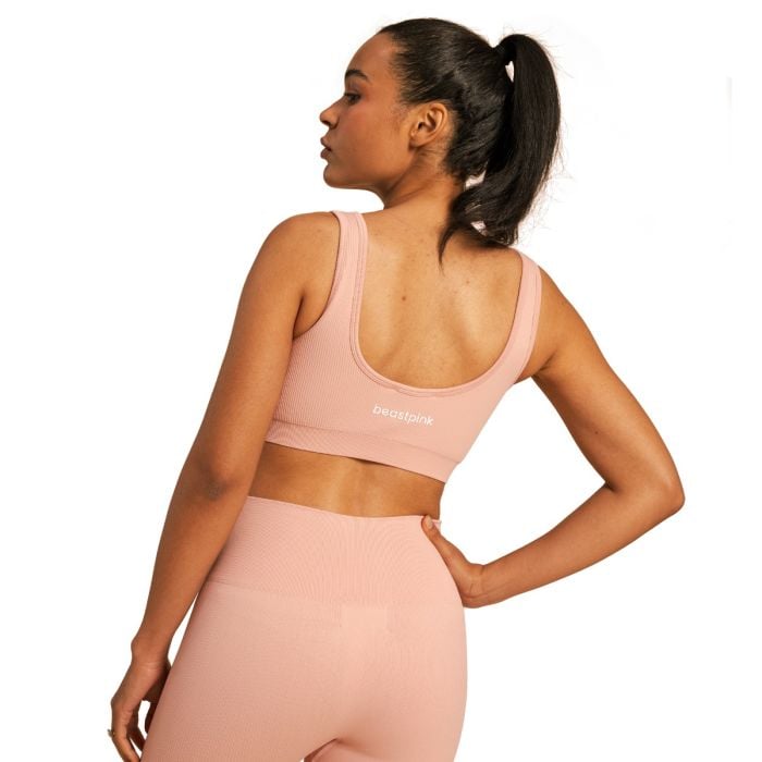 Osim savršenog materijala grudnjaka, cijenit ćete i njegovo pristajanje. Skrojena je da savršeno zagrli vaše obline kako biste se mogli usredotočiti na vježbanje. Treba spomenuti i njegov bezvremenski dizajn. Impresionira svojim trendi rebrastim uzorkom i otvorenim leđima koji mu daju jedinstven izgled. Osim toga, ukrašen je BeastPink logom na leđima.