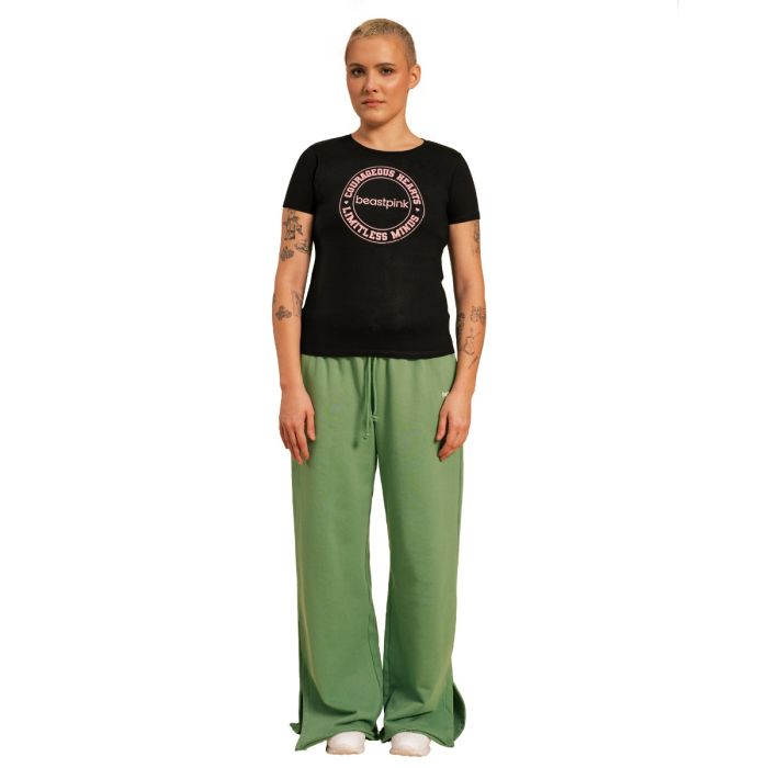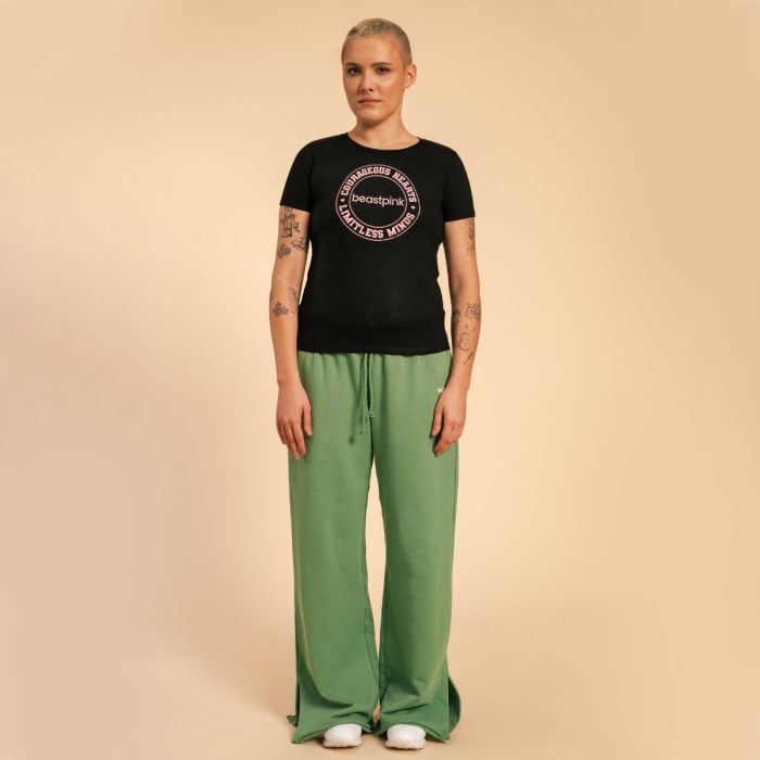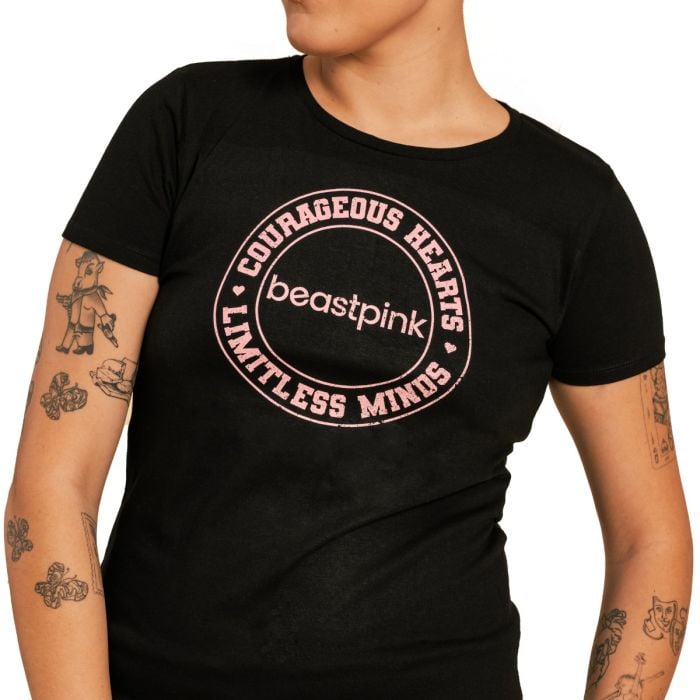 Glavni element dizajna majice je BeastPink logo sa sloganom koji slavi vašu hrabrost i otvoren um. Pomoći će vam pokazati svijetu svoju odlučnost i motivaciju da radite na sebi. Lako se kombinira s tajicama ili trapericama, što ga čini svestranim izborom za svakodnevnu sportsku kombinaciju. Osim toga, savršena je za jogu, pilates, šetnju, kao i za ležerno nošenje.